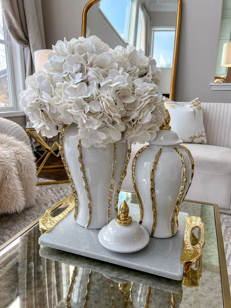 Inspire Me! Home Decor White Ceramic Candle Holder With Gold Elegant Details (2 Sizes)