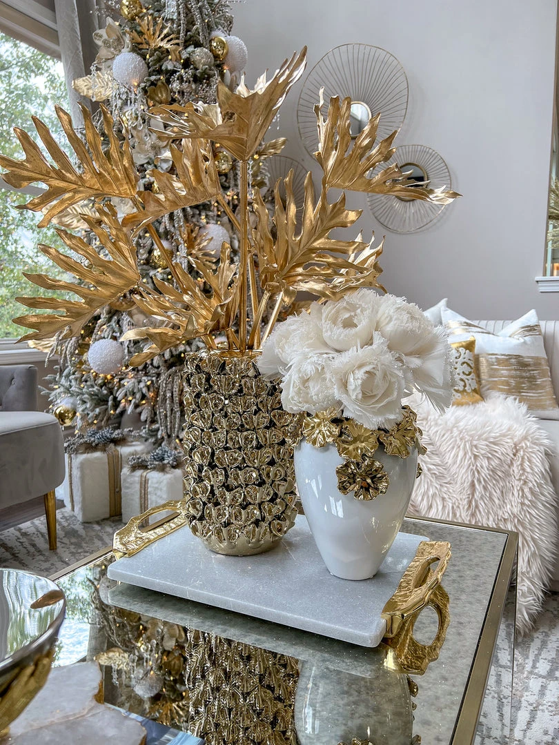 Inspire Me! Home Decor White Ceramic Vase With Stunning Gold Floral Detailed Center