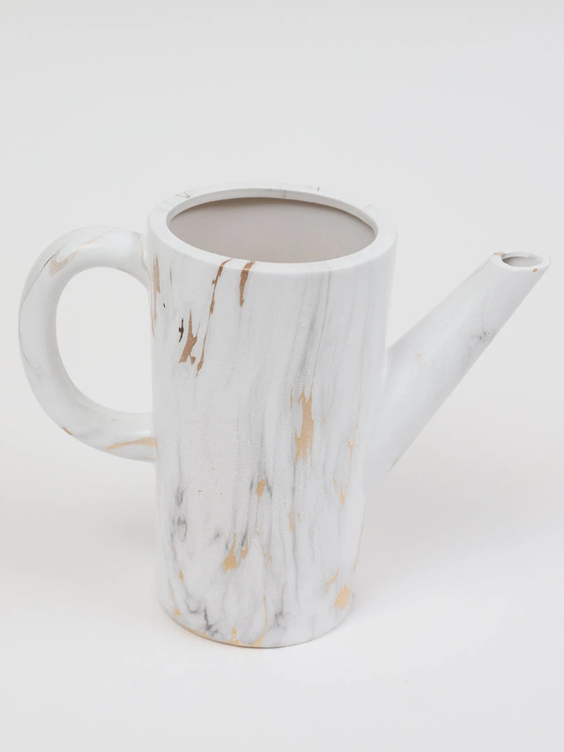 Description: This ceramic watering has a gold and white marble design and will make for a beautiful watering can or use it as a vase for your favorite IMHD faux florals.