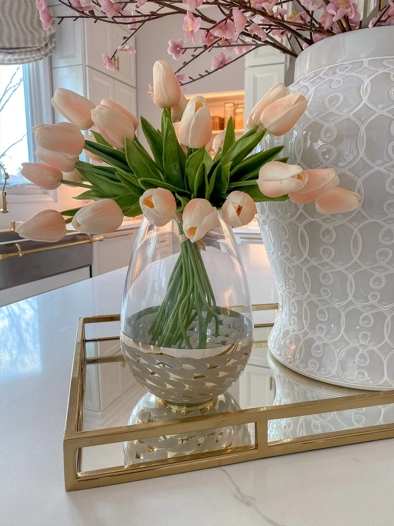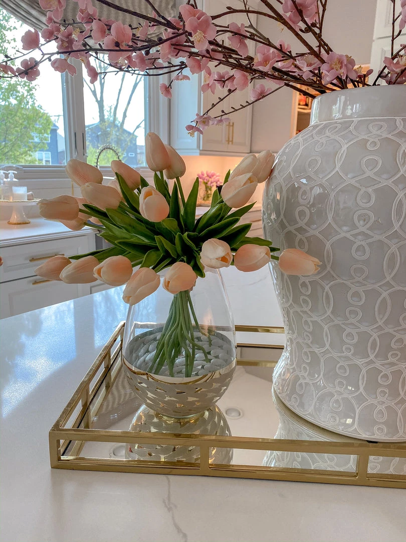 Inspire Me! Home Decor Rectangular Marble Tray With Cherry Blossom Details