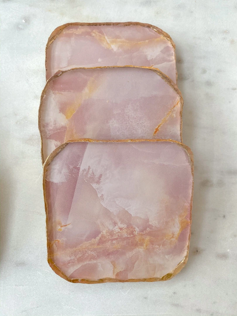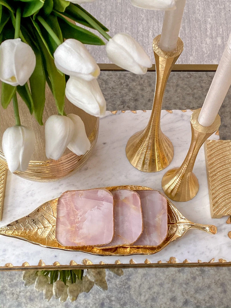 Keep your your tabletops water free with our glamorous gold trim coaster.
