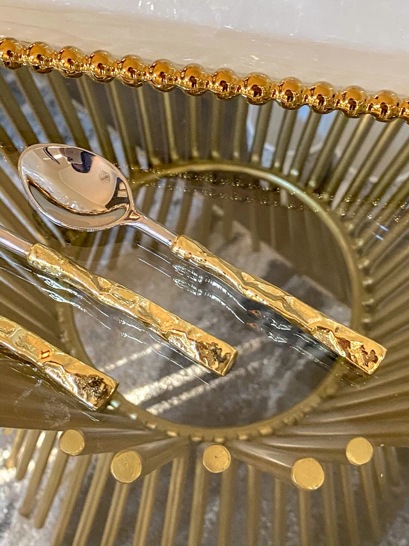 These spoons are great for your tea cups and for displaying on your coffee station. They match the Crumpled Gold Handle Forks perfectly!