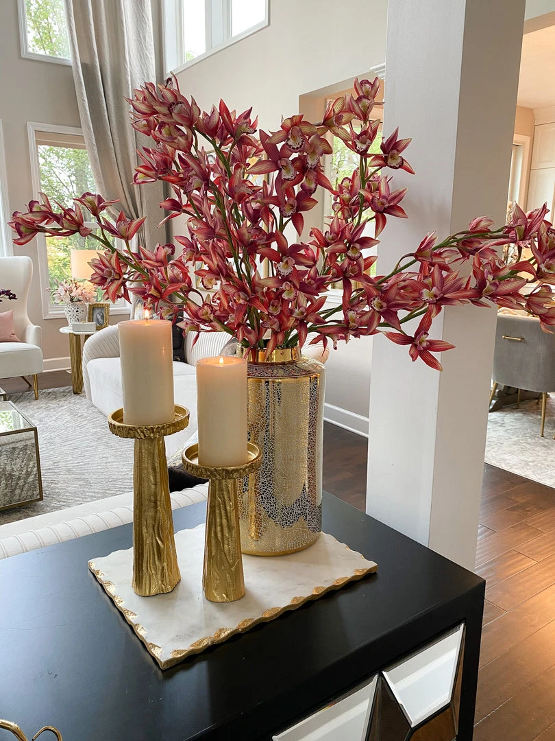 Descrtiption: We love the bold color of this orchid stem! Perfect to add a bold pop of color to any room, and just in time for summer florals!