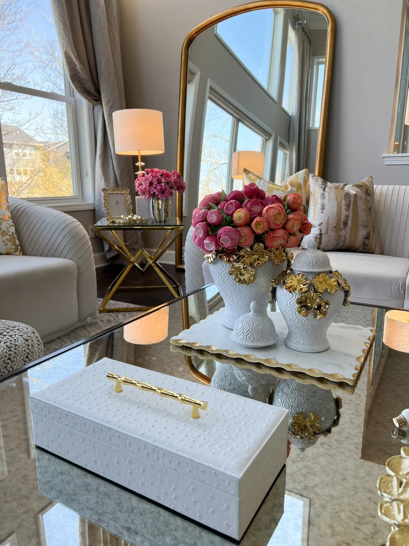 Inspire Me! Home Decor White Ceramic Vase With Stunning Gold Floral Detailed Center