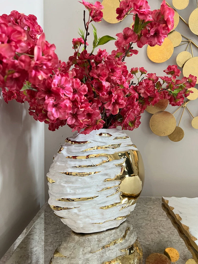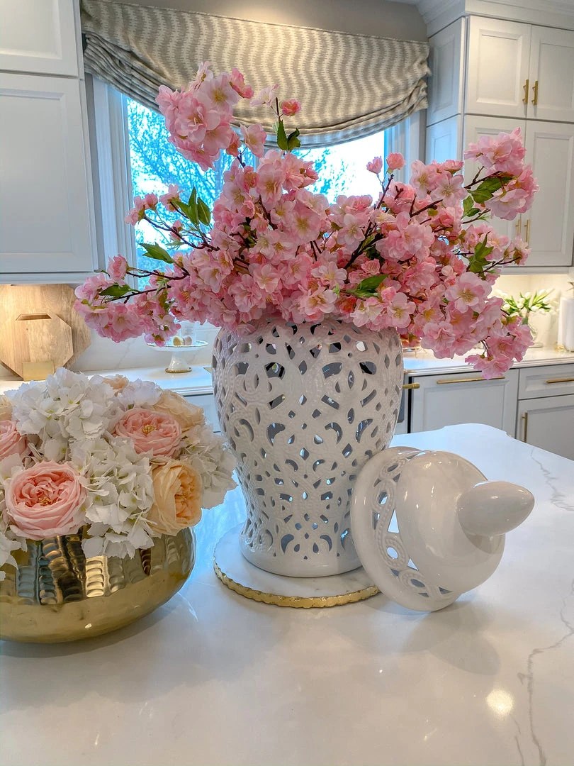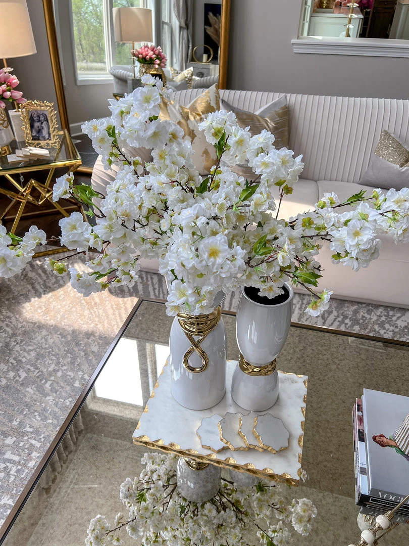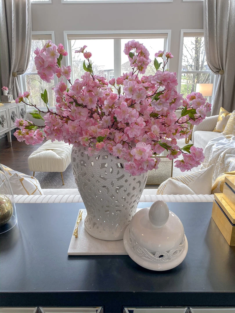 These faux cherry blossoms are great to style during any season! The stunning colors at a pop to any room.