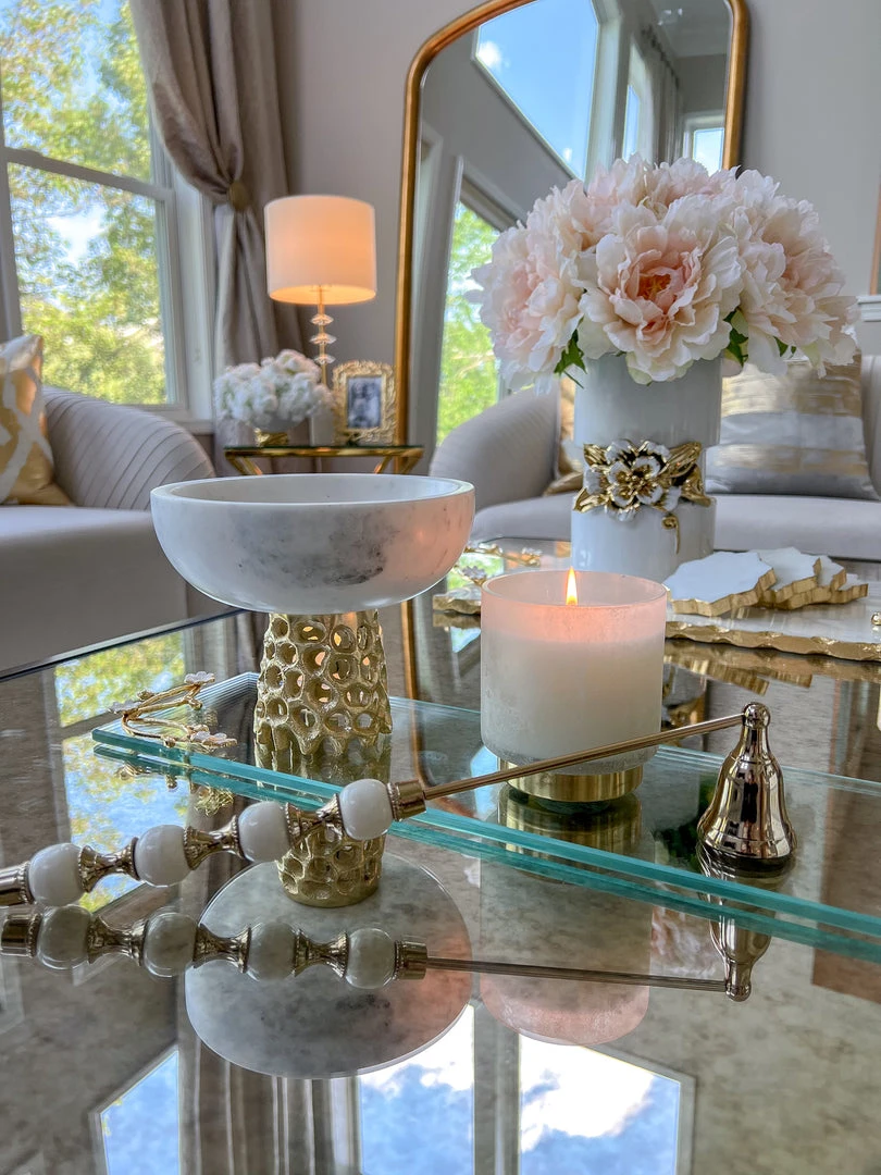 Inspire Me! Home Decor Round Marble Tray With Gold Edge And Metal Details