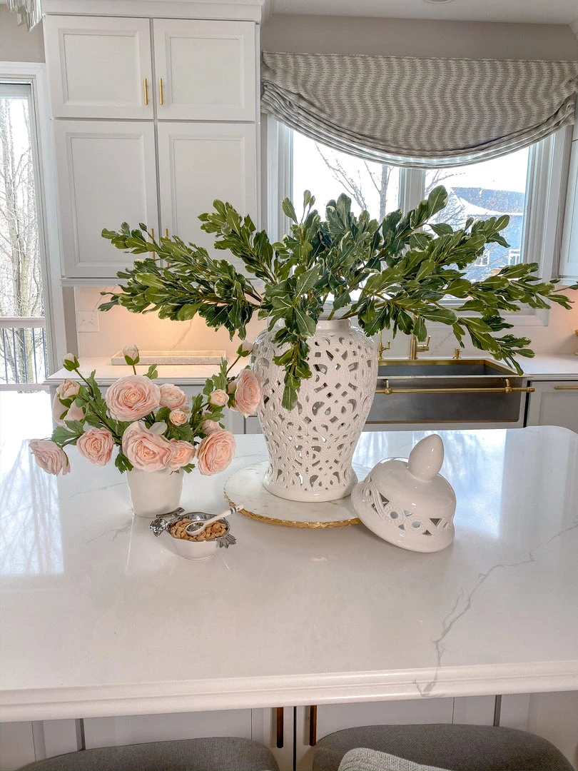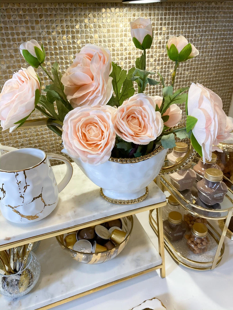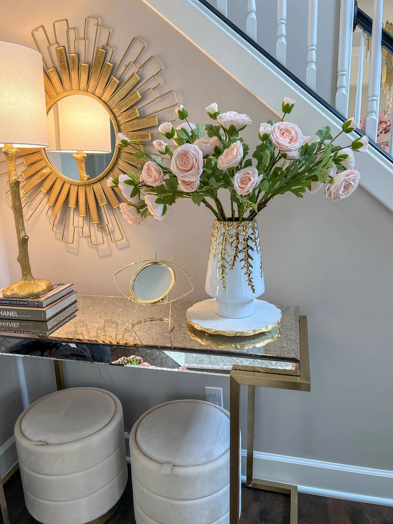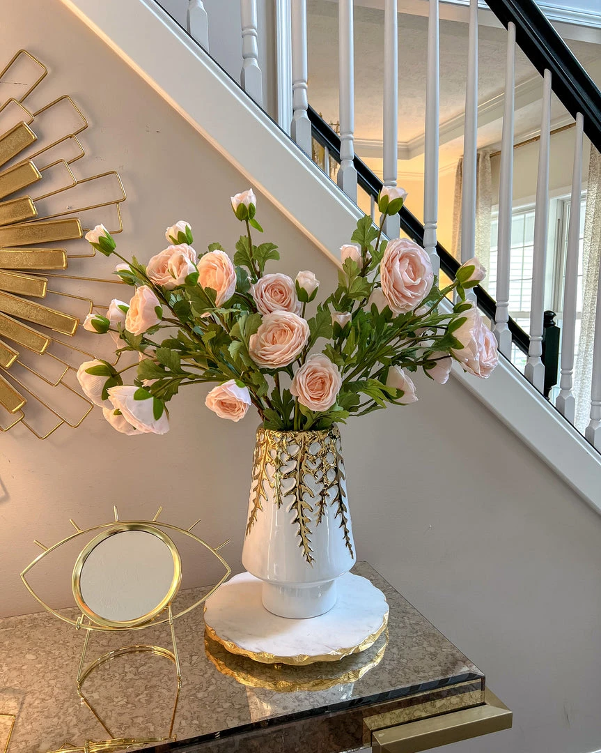 Inspire Me! Home Decor White Ceramic Vase With Stunning Gold Floral Detailed Center