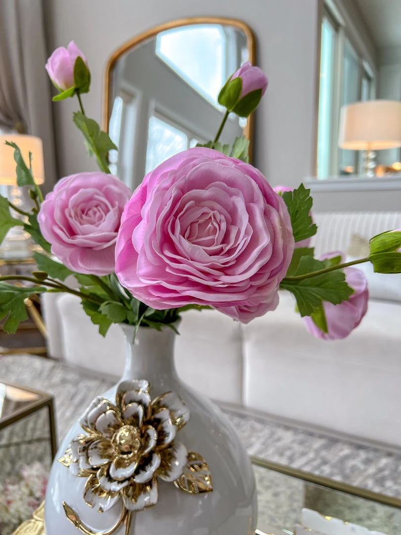 Description: This stunning triple bloom ranunculus stem features real-touch petals and they look so real! We love the way these blooms style well in any vase.