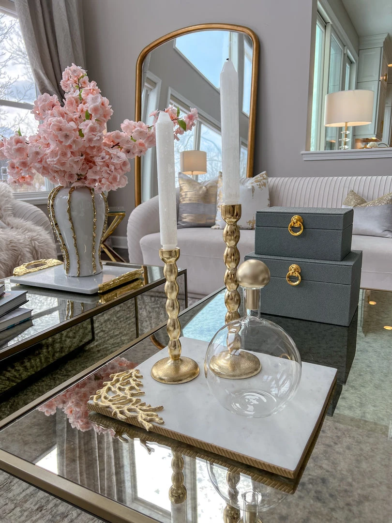 Inspire Me! Home Decor Rectangular Marble Tray With Cherry Blossom Details