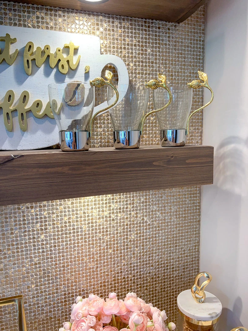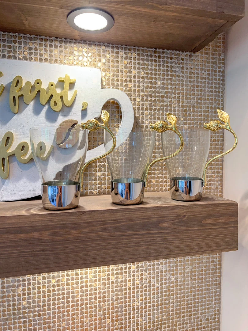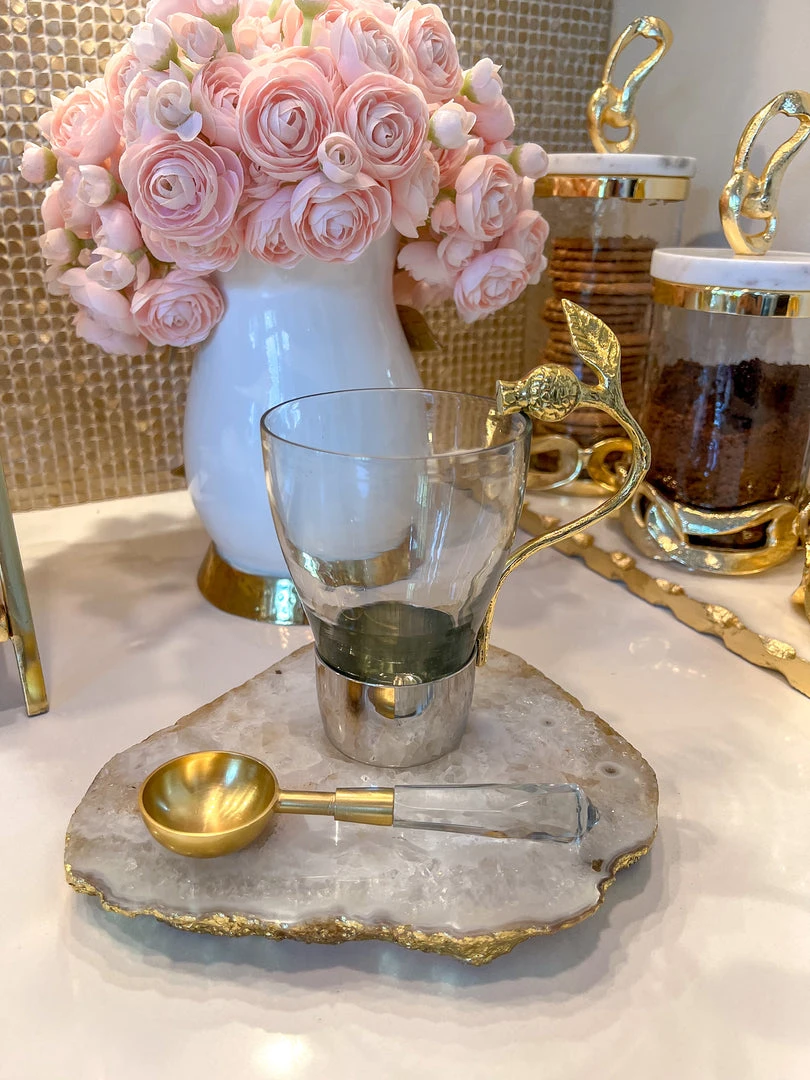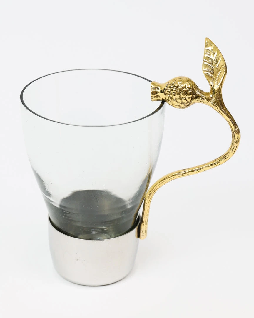 Description: We are in love with this glass mug and its beautiful detailed leaf handle!