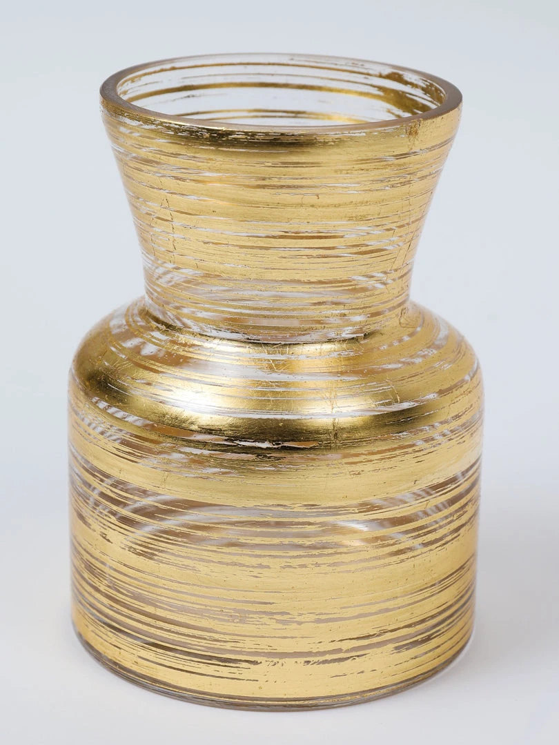 Description: This small vase is perfect for the kitchen counter or anywhere tight on space. The gold metallic swirl design adds an elegant charm!