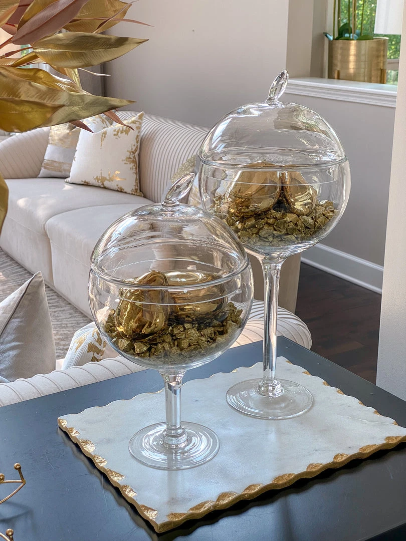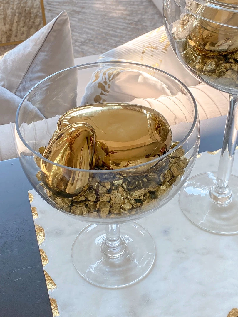 Description: This gold ceramic stones add a pleasing touch to any home decor! Perfect for any season!