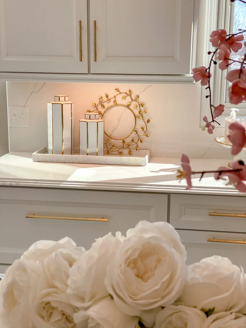 Description: This gold and white jar is a stunning design! The crisp edges make this a modern twist and the glossy gold finish adds a brilliant touch of glam! Available in 2 sizes!