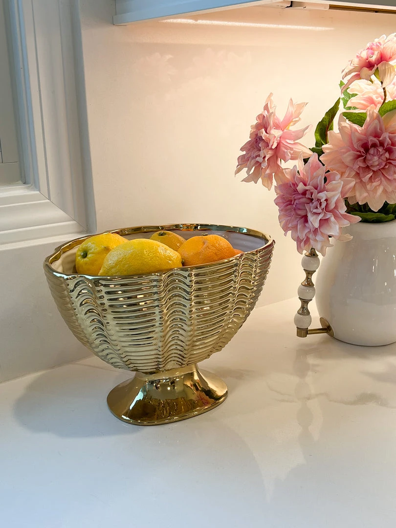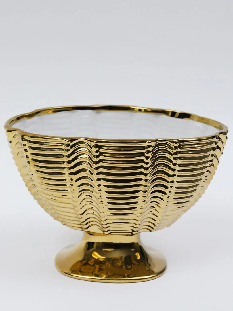 Description: This ribbed texture footed bowl is very versatile. You can use it for a candy/snack dish or as decor on your coffee table!