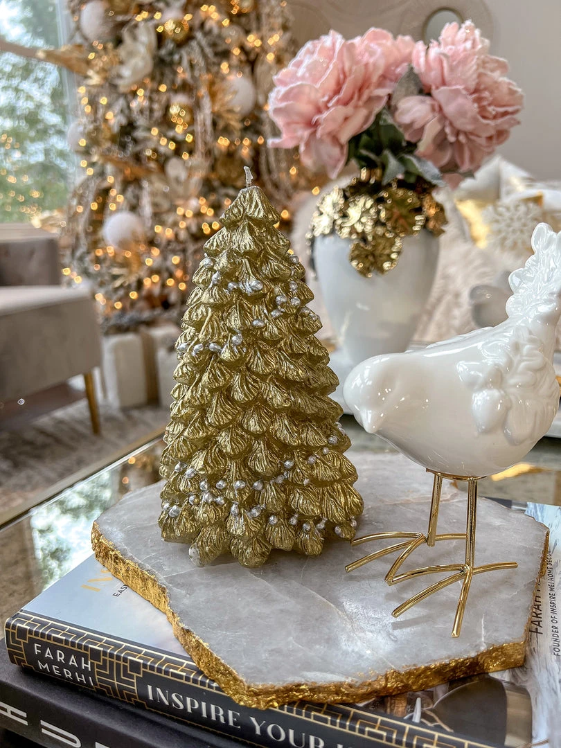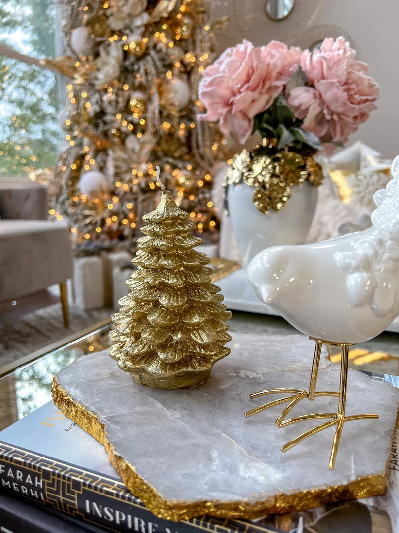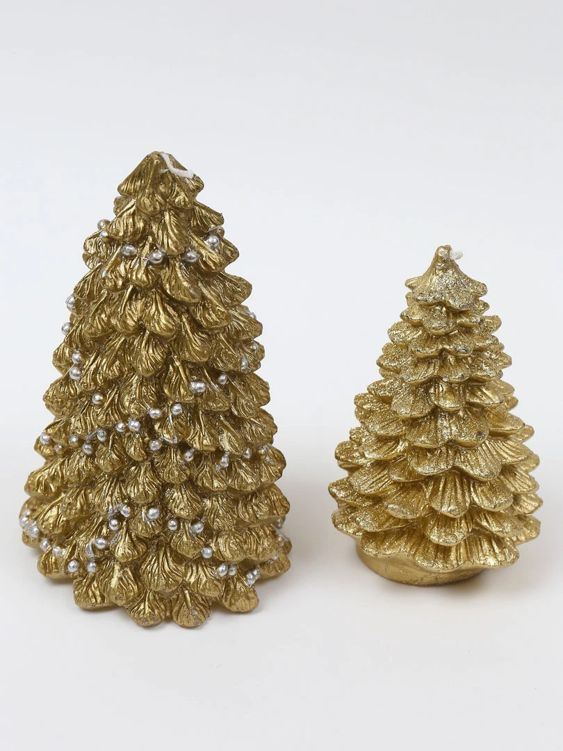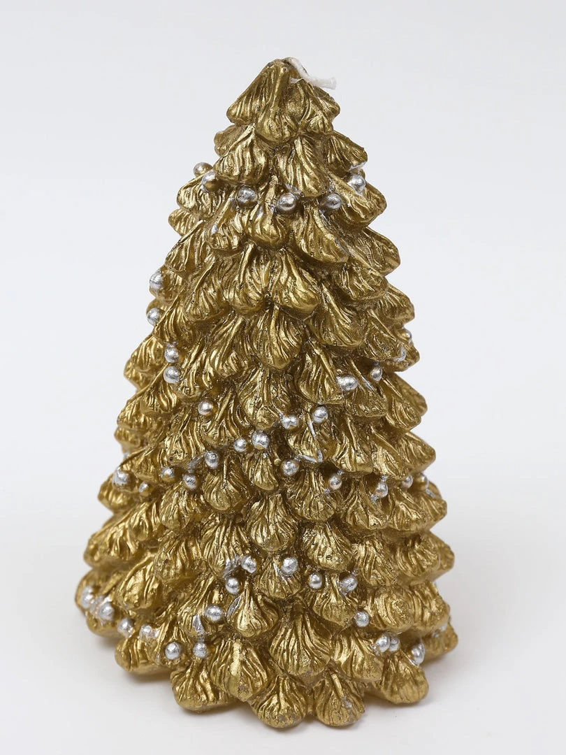 Description: What could be more festive than a gold Christmas tree candle for this holiday season! This candle is unscented and comes in two sizes. Priced for one candle.