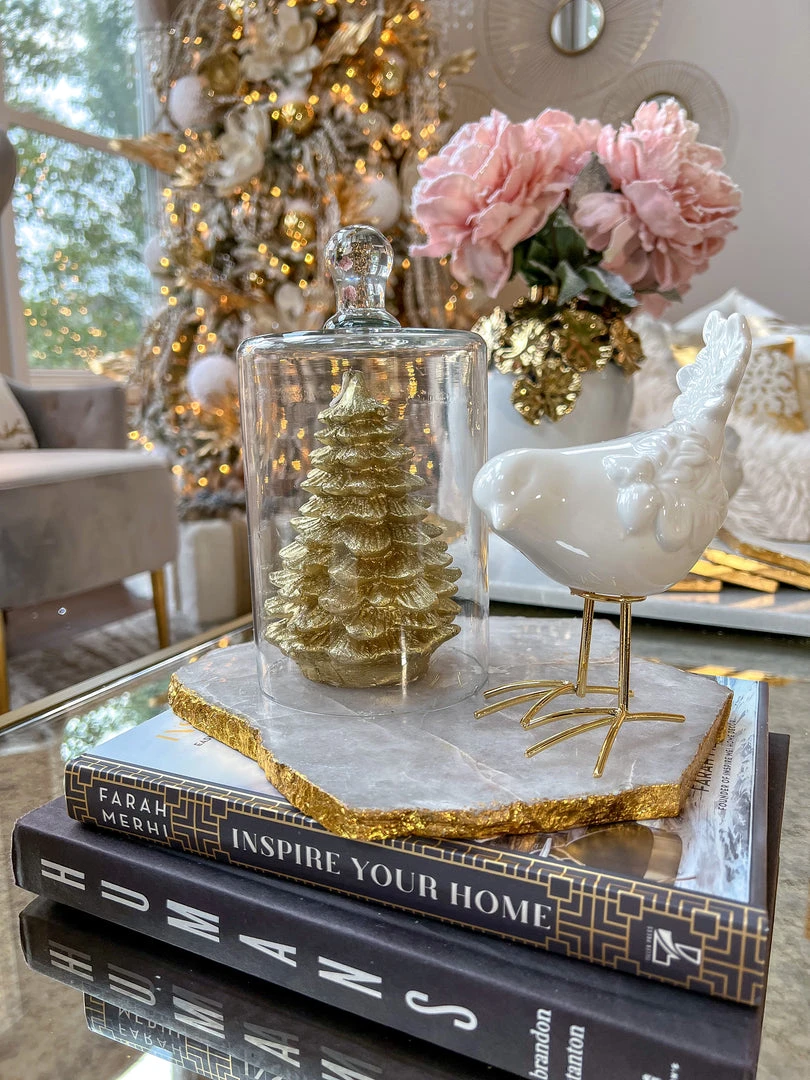 Inspire Me! Home Decor White Ceramic Candle Holder With Gold Elegant Details (2 Sizes)