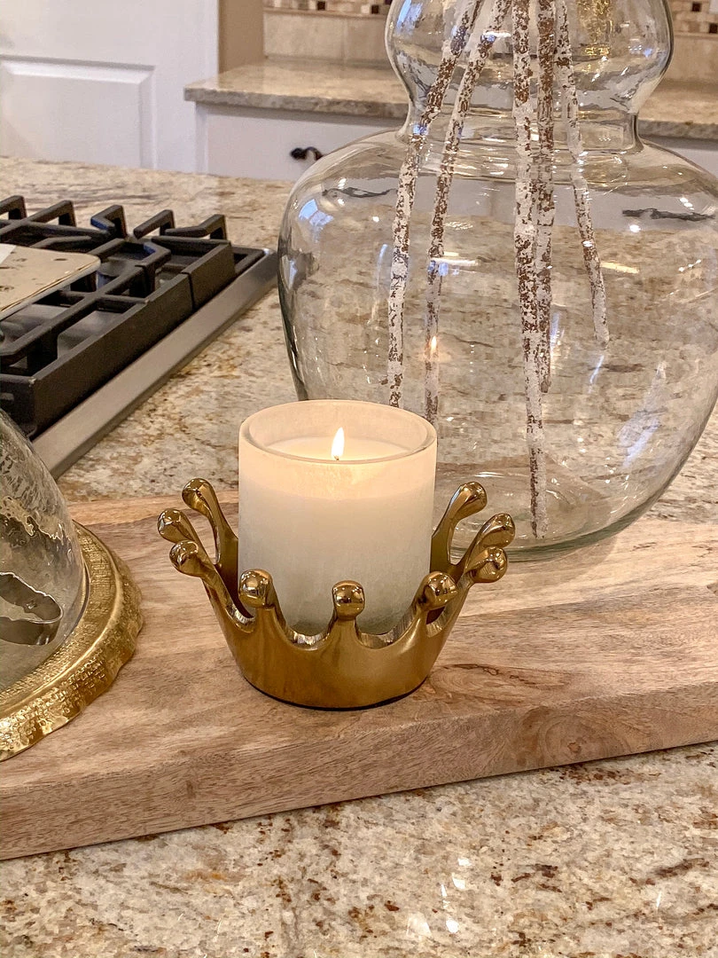 Description: This pretty piece is easily styled as a candle holder, bottle holder, or use as classy drink holder in the family room.