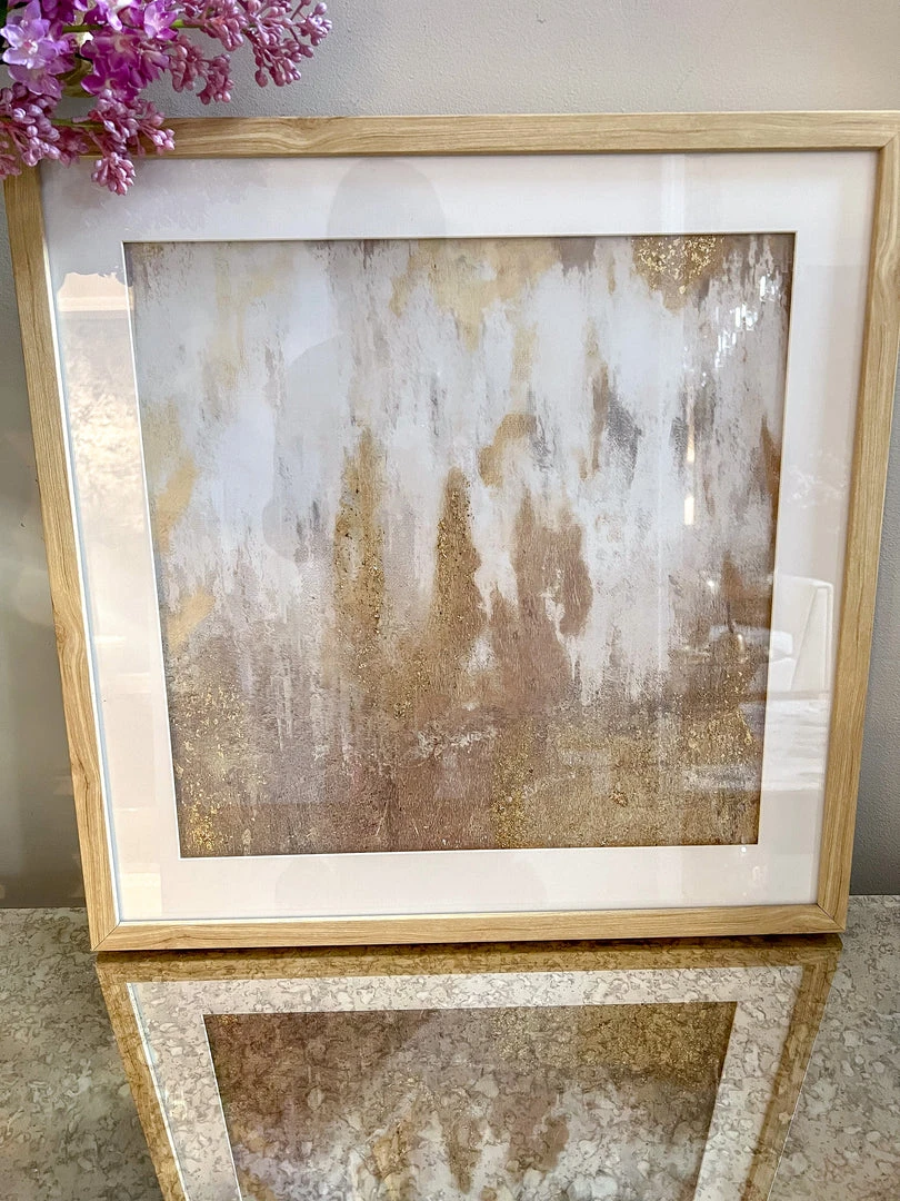 Description: The two-piece framed wall art has gorgeous tones of gold, gray, and beige which blends with almost any decor style.
