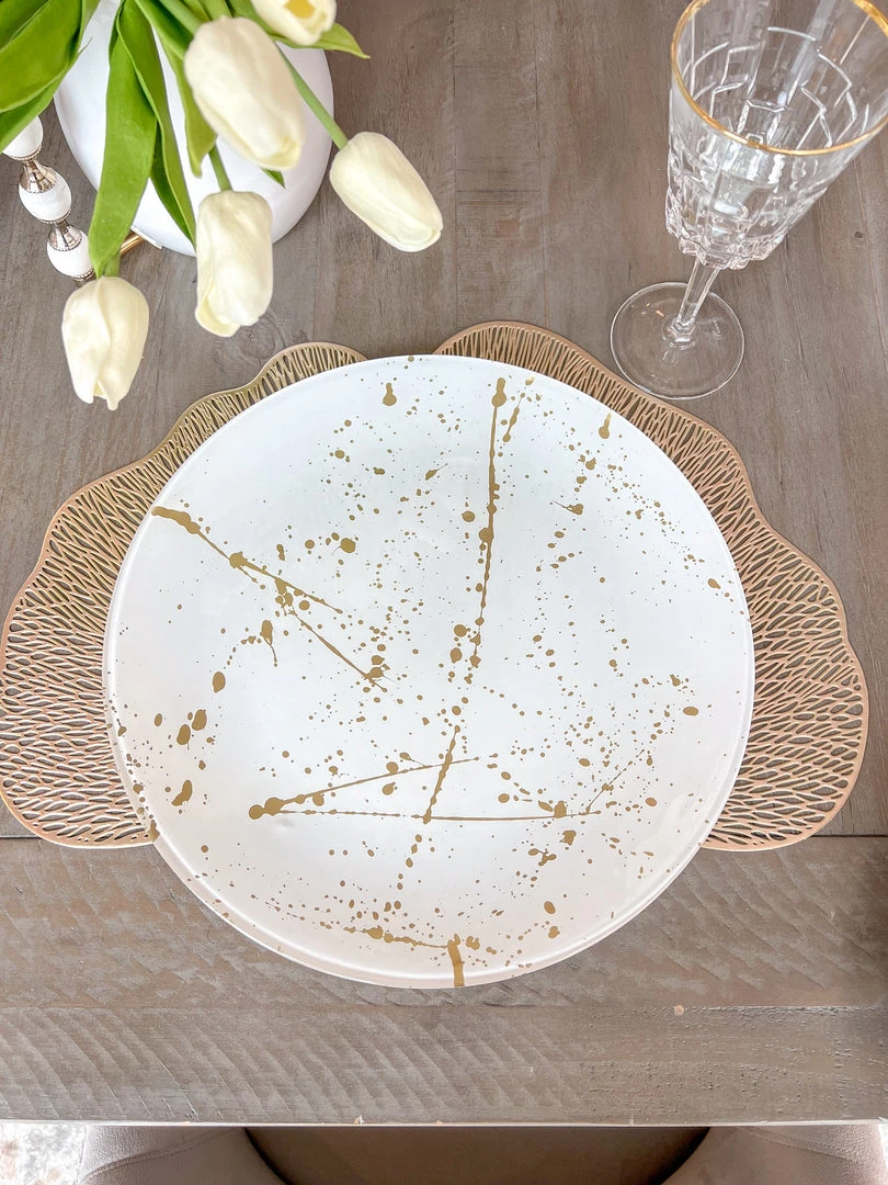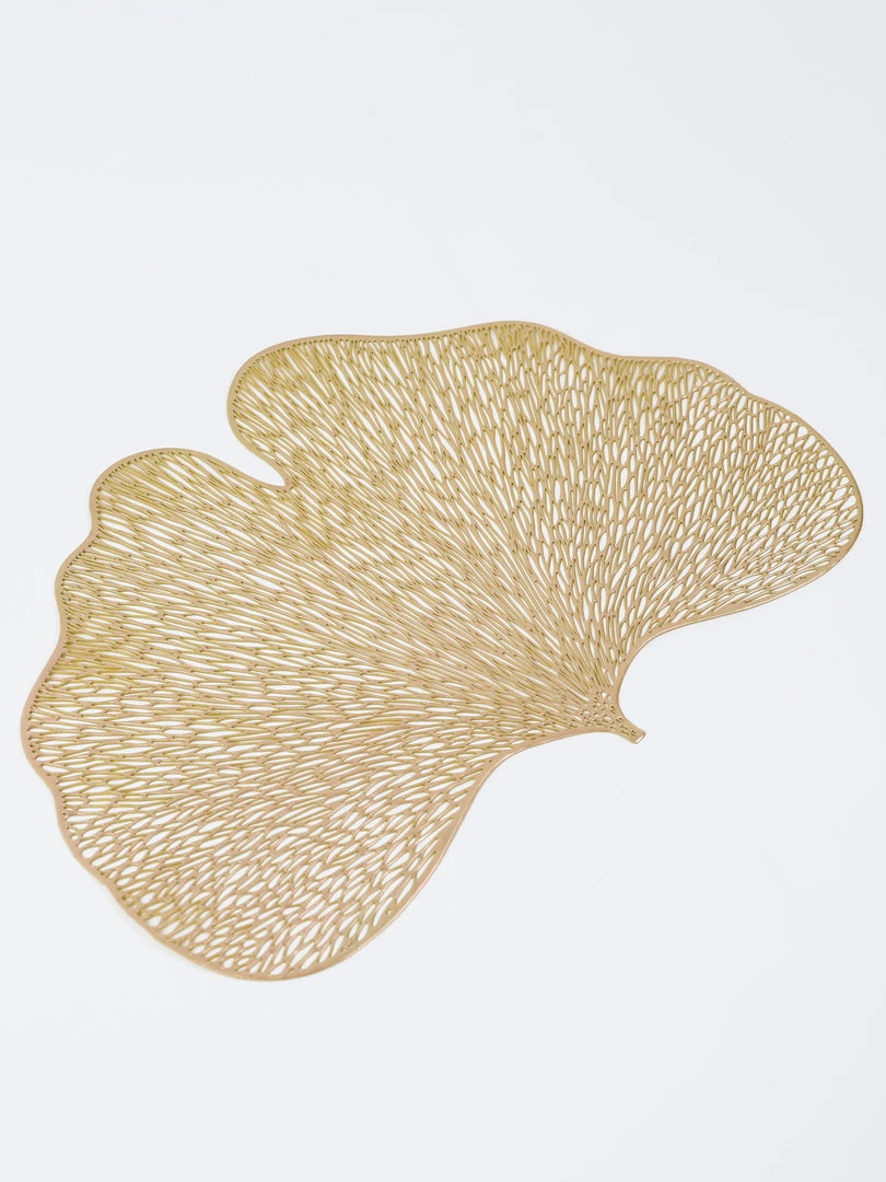 Description: This gold table mat features the shape of the Ginko leaf and is the perfect addition to your dinner table!