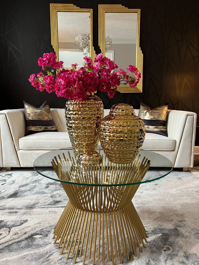 Description: This gold hammered ginger jar will look beautiful styled with your favorite faux floral stems, or it is gorgeous all on its own.