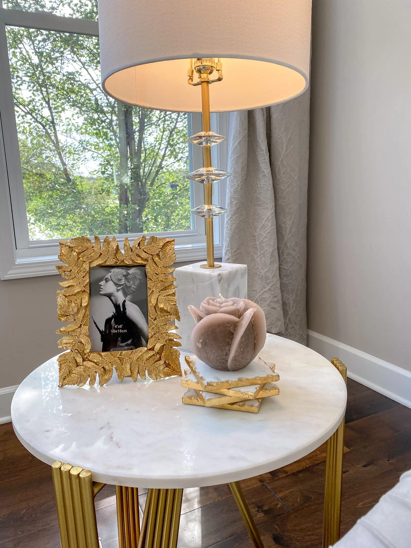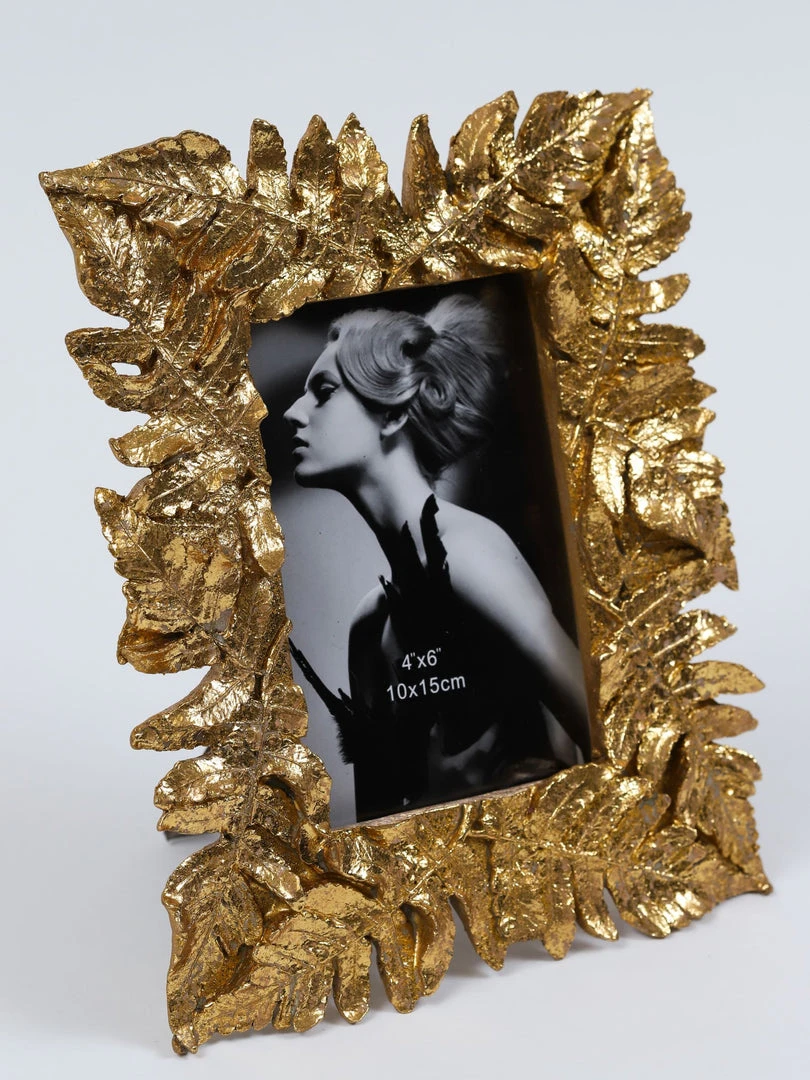 Description: This stunning gold leaf picture frame is a perfect accessories to highlight your favorite memories! The gold metallic leaves shimmer and offer a beautiful look for your home.