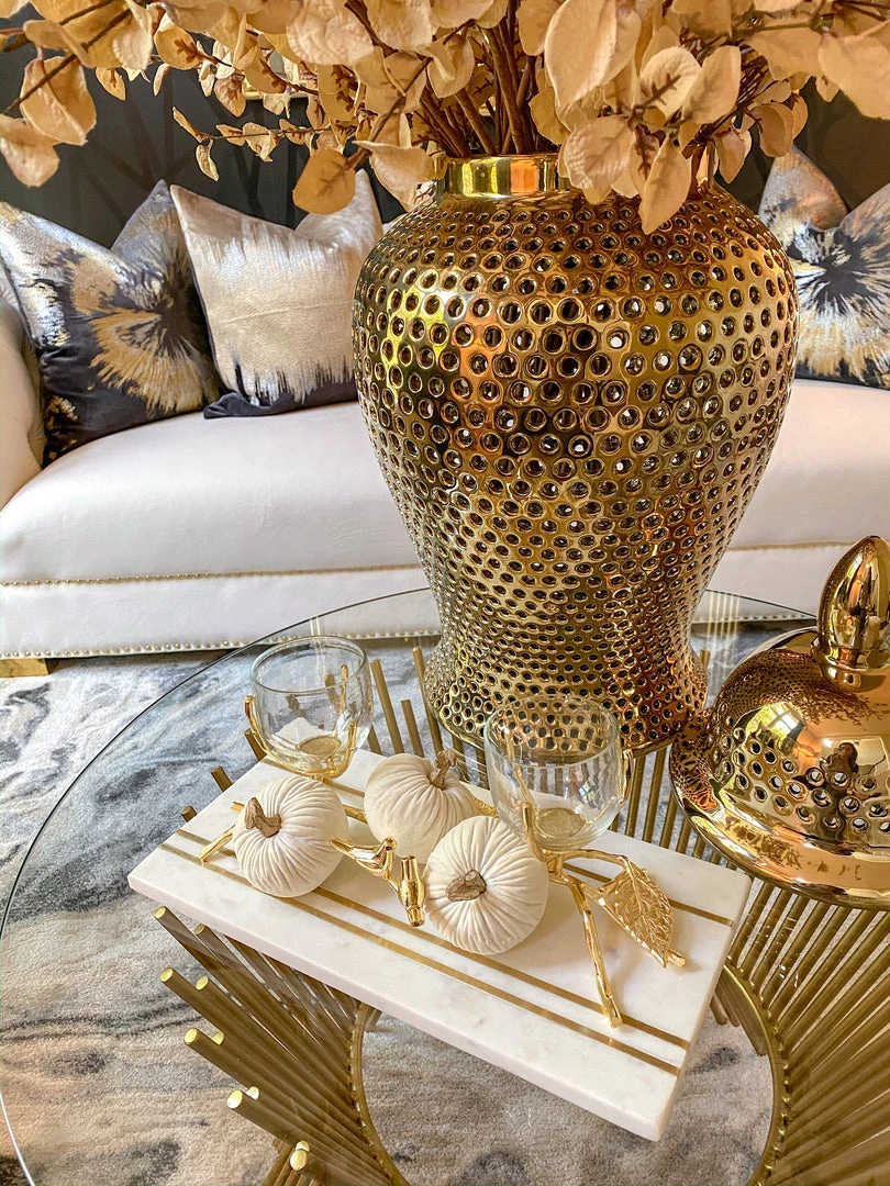 Inspire Me! Home Decor Round Marble Tray With Gold Edge And Metal Details