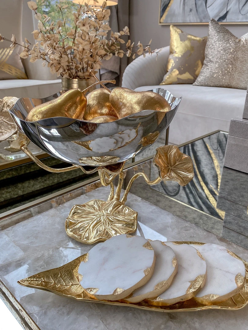 Inspire Me! Home Decor Round Marble Tray With Gold Edge And Metal Details