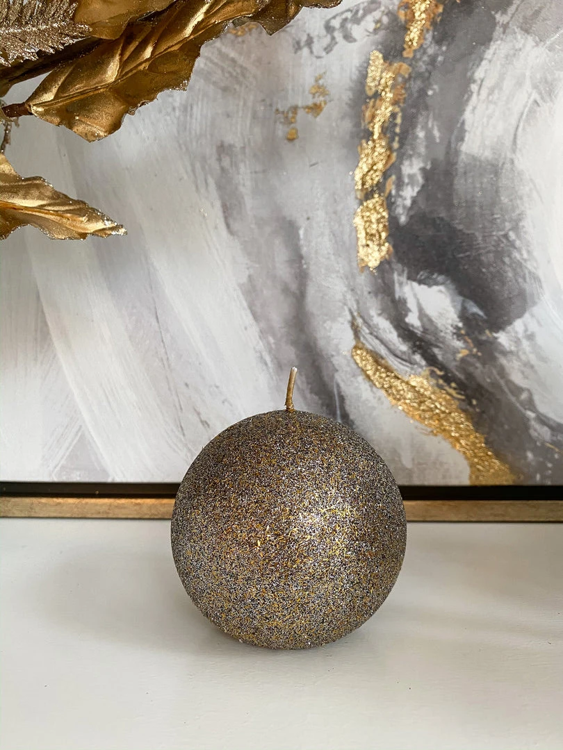 Orb candles are the perfect accessories for the holidays, this one features a sparkly gold finish that is tried and true to the holidays and will tie back to any of your holiday decor.