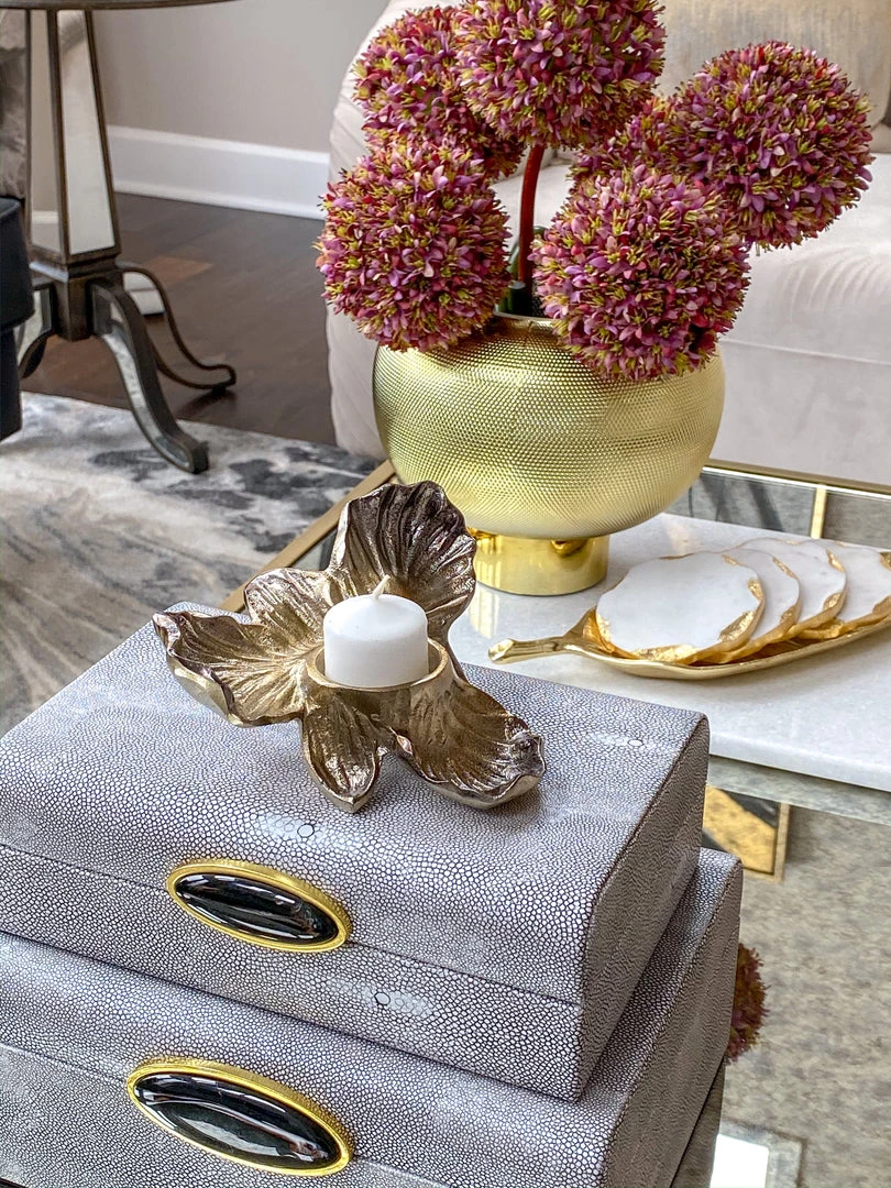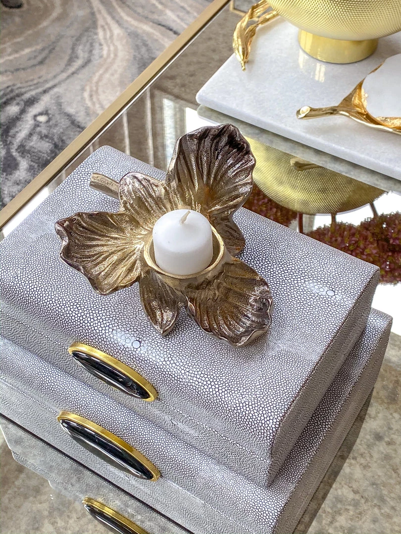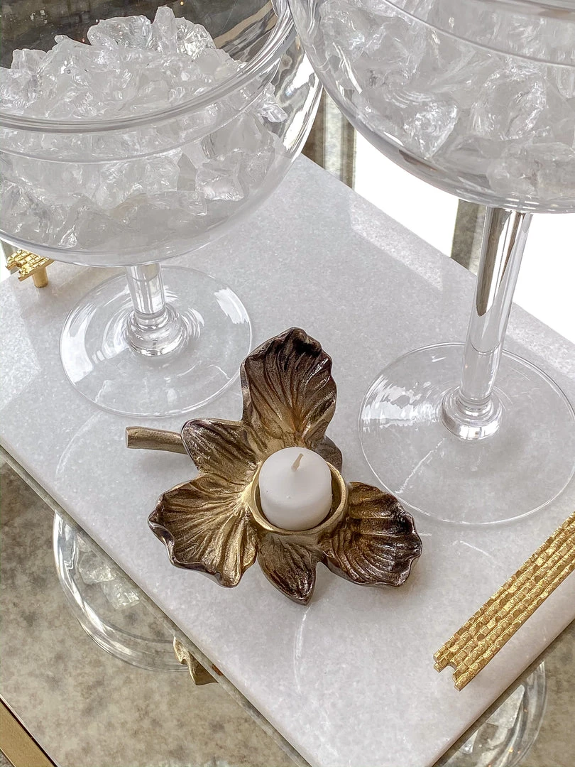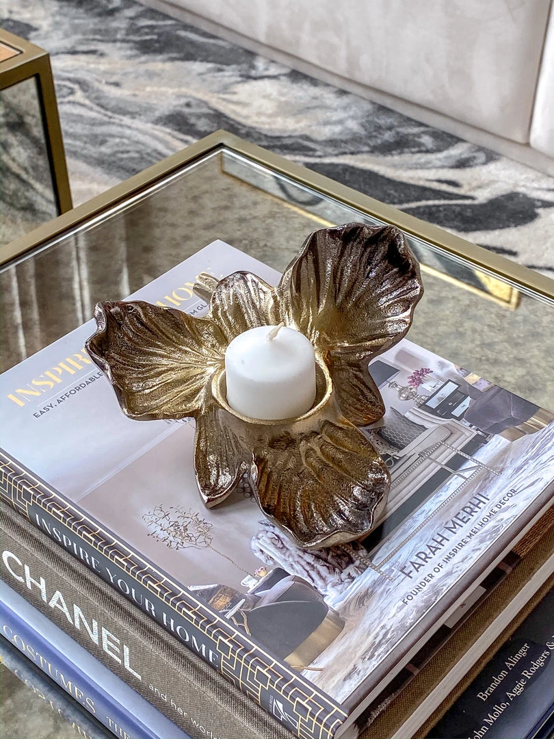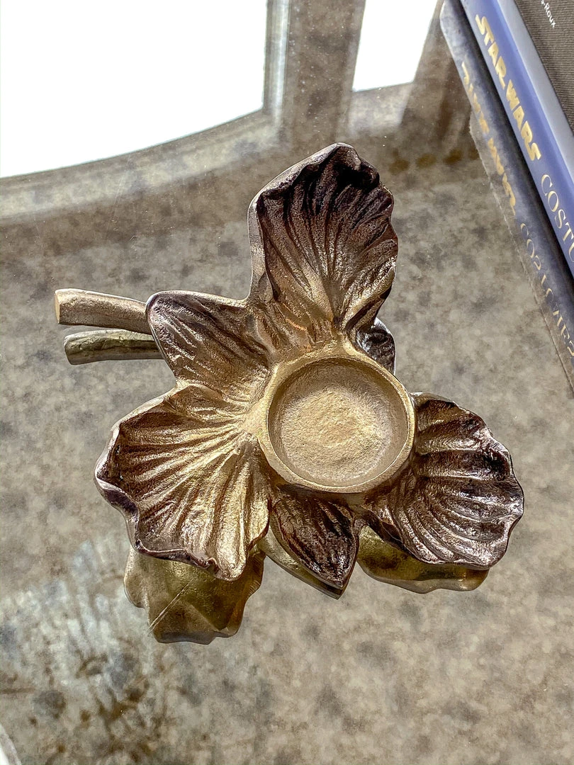 This tea light holder features the shape of an orchid which bring a natural feel to your home. A beautiful addition to any space.