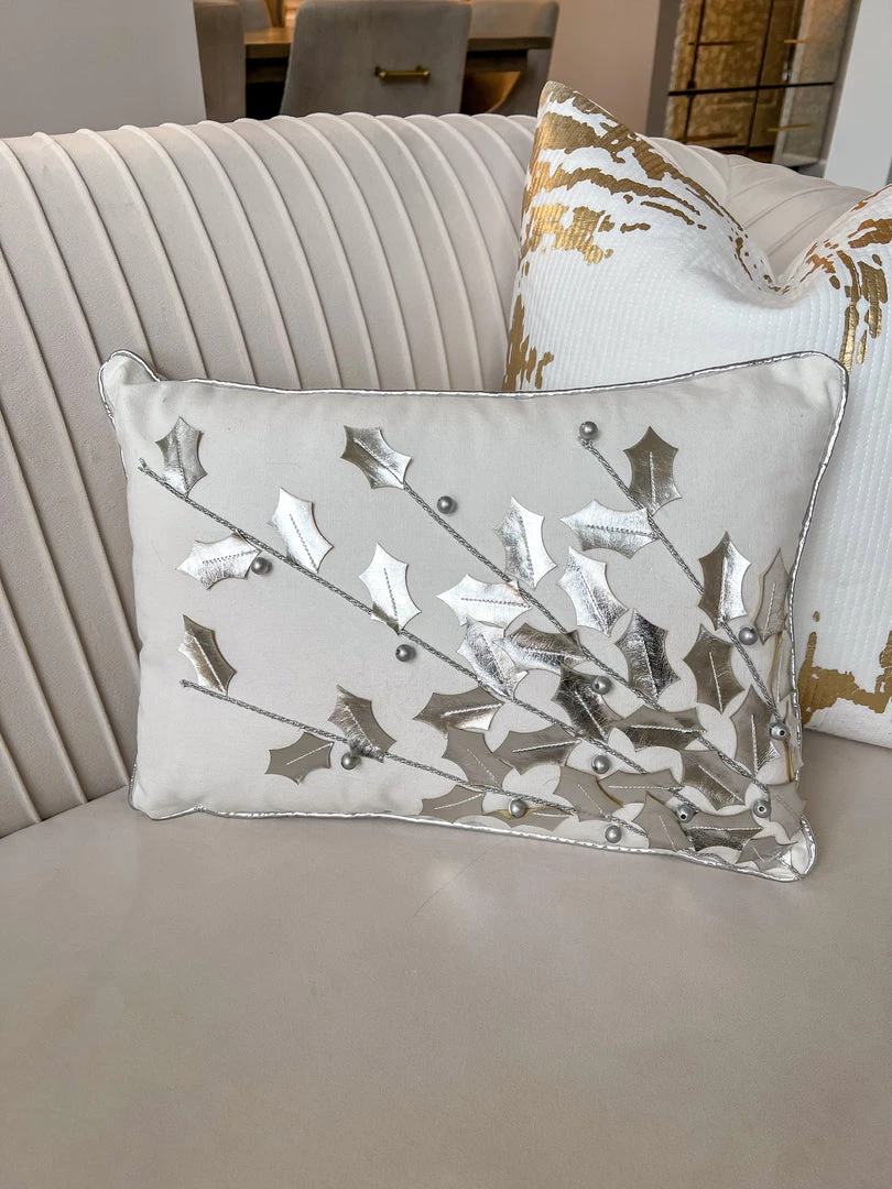 Description: This gorgeous pillow with poinsettia design will make a statement for the holiday!