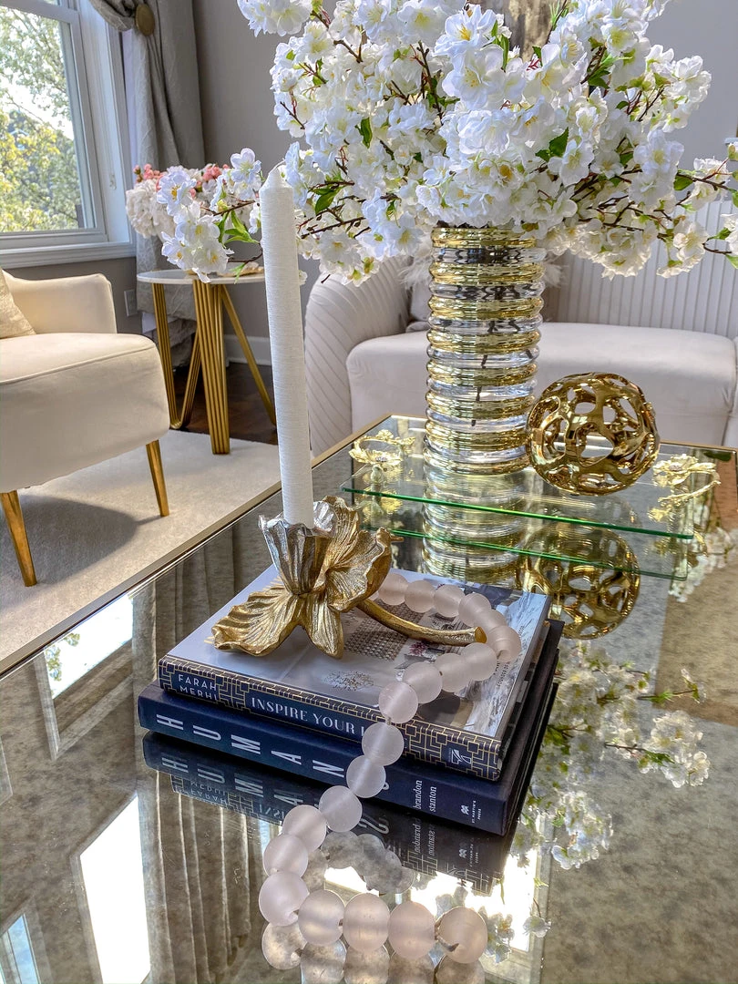 Inspire Me! Home Decor Large Rectangular Glass Tray With Cherry Blossom Details