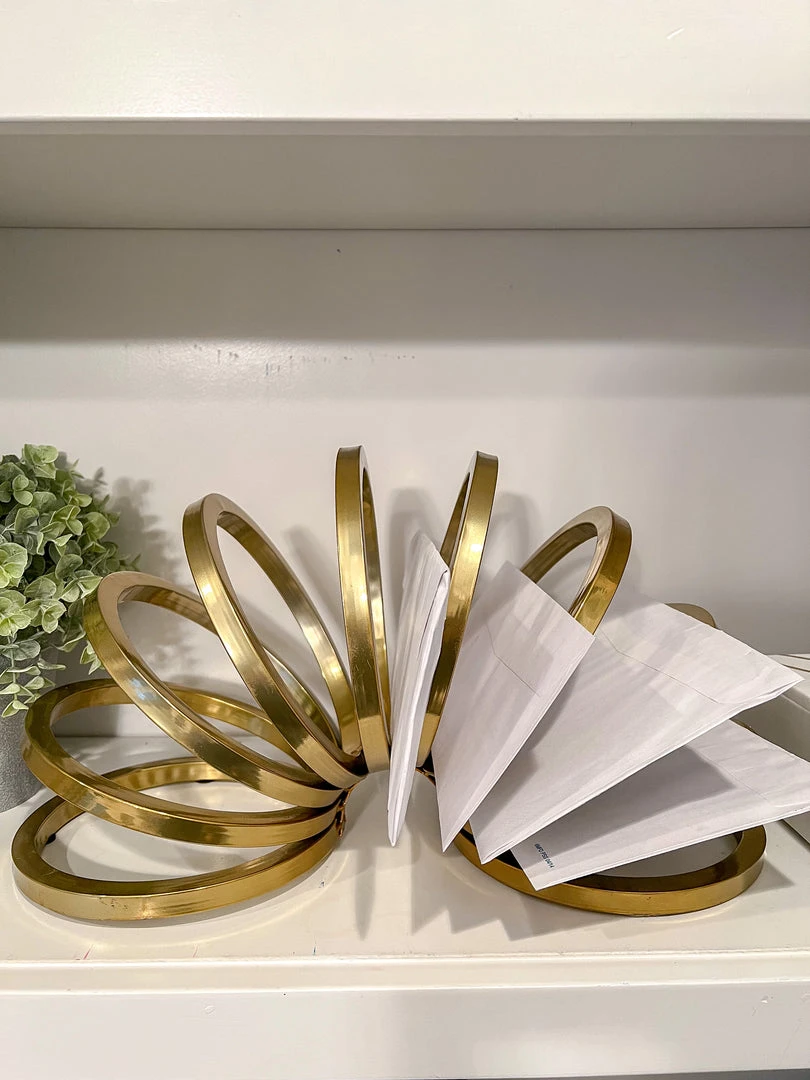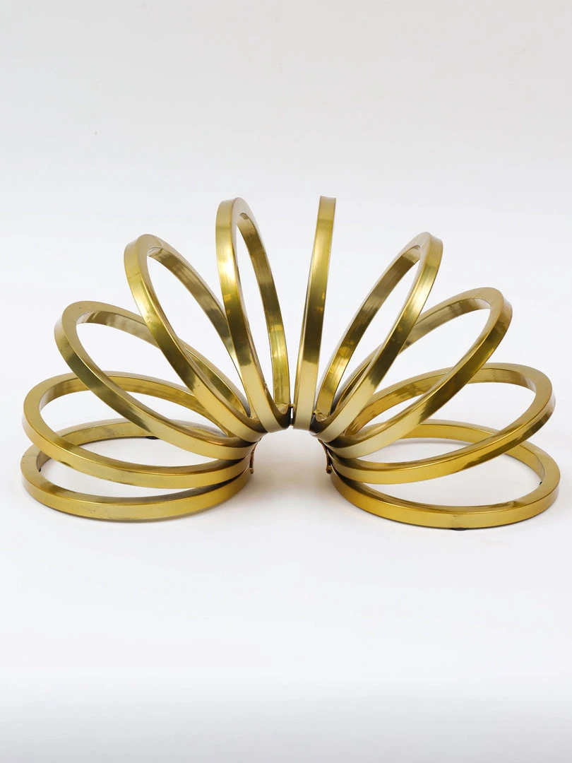 Description: Add some fun and unique design elements to your space with this fun little sculpture. This gold slinky will add a playful but still visually stunning touch to every space.