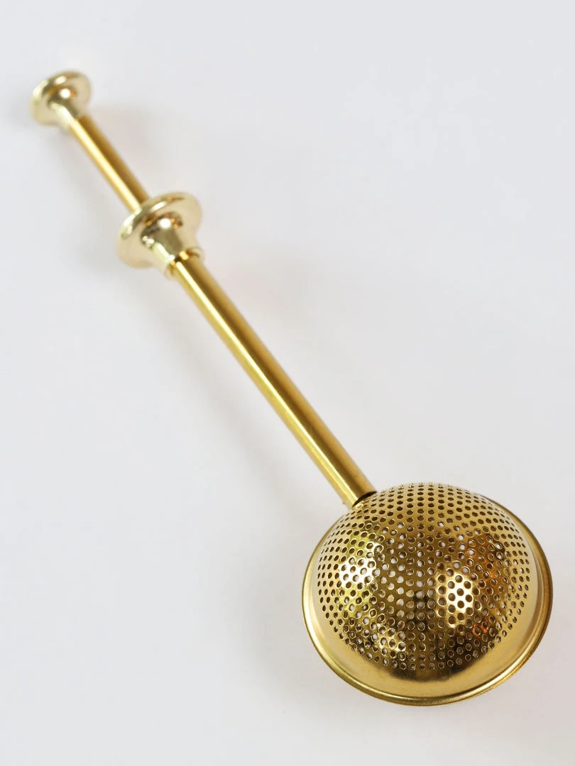 Description: This beautiful gold tea egg is the perfect tool for that perfect cup of tea! Simply push the handle to open the tea egg, insert your favorite bag of tea, set it in your cup and enjoy!