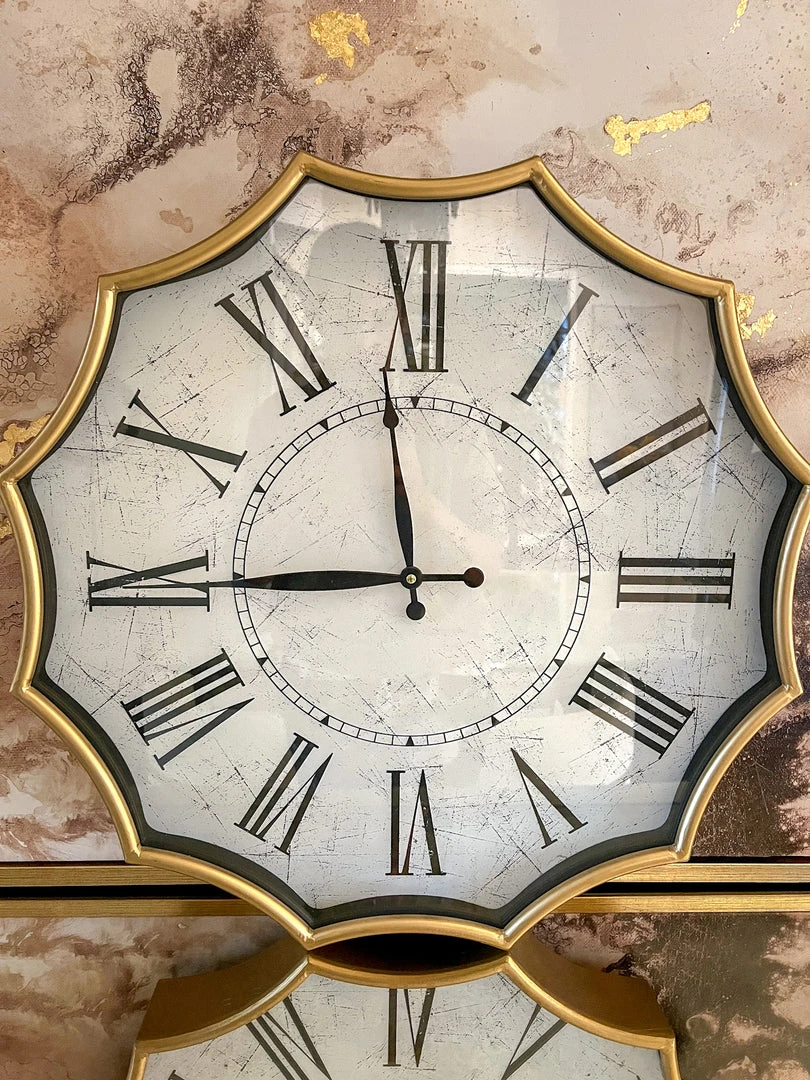 Description: What a gorgeous wall clock this is with its gold edge and beautiful roman numerials!