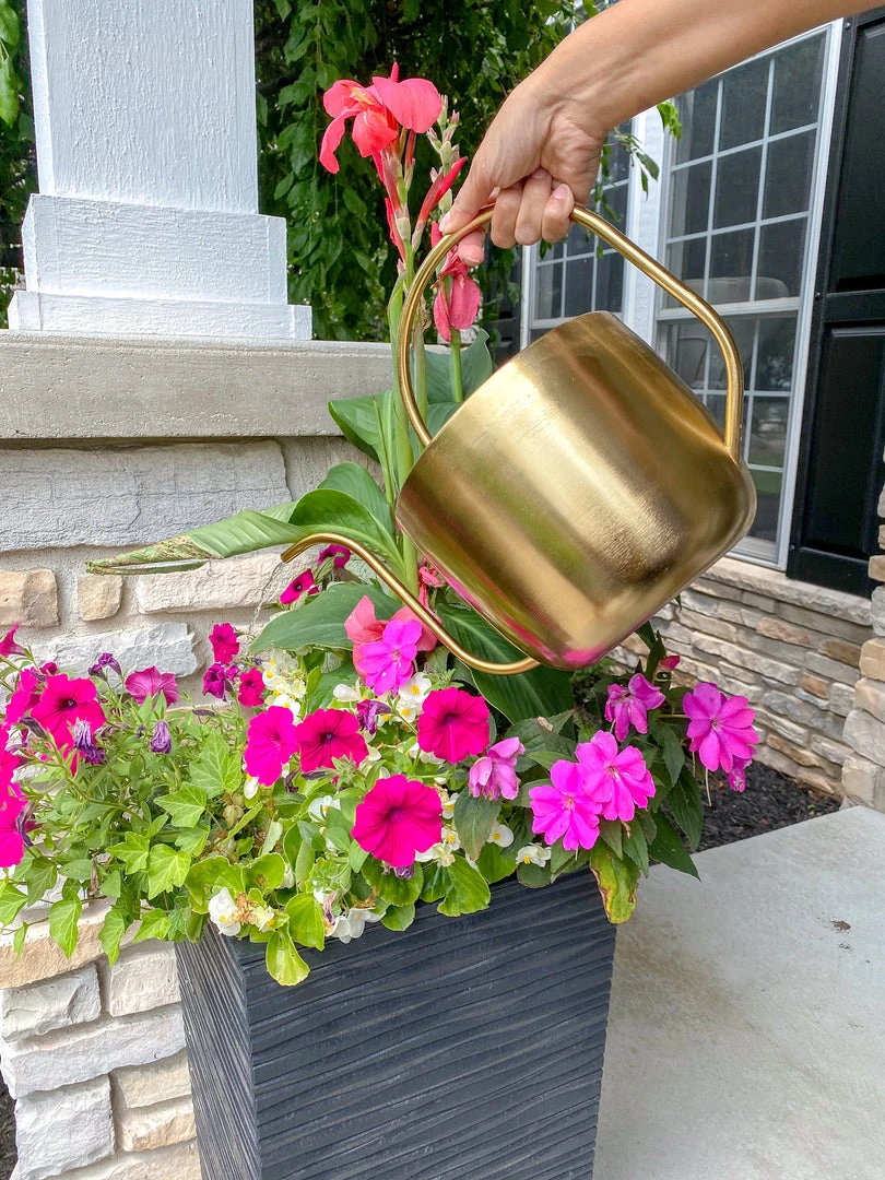 Description: We love the stunning silhouette of this gold watering can! The gold finish and stunning structure will make a perfect addition to your home decor!