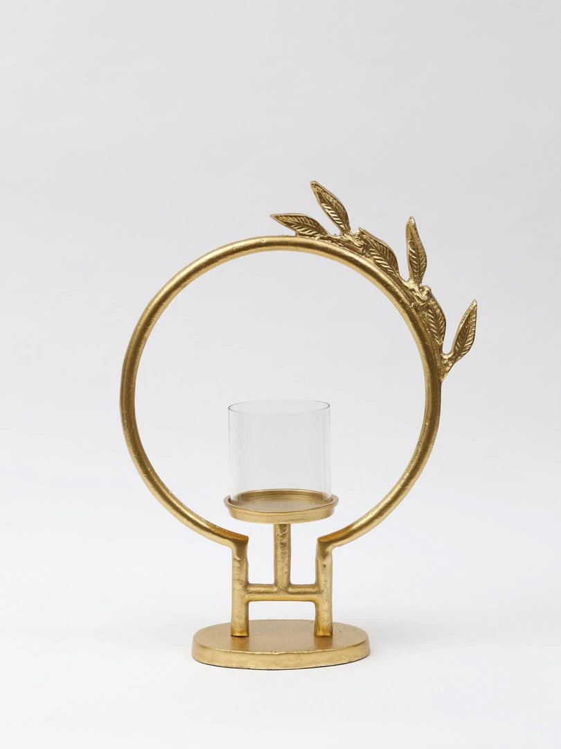 Description: The circular design with the leaf detail is the perfect display for your favorite candles and makes them the centerpiece of your display. Featuring a gold finish and natural texture, this is a beautiful must-have for your home!