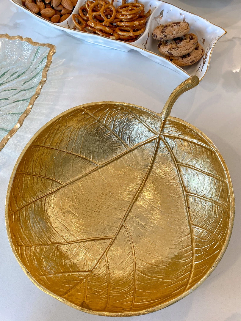 Description: This golden leaf bowl is a perfect display piece for any room. The beautiful texture of this leaf exquisitely compliments the bright gold tone.