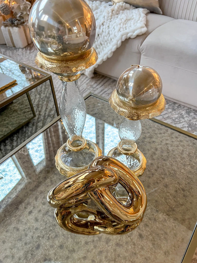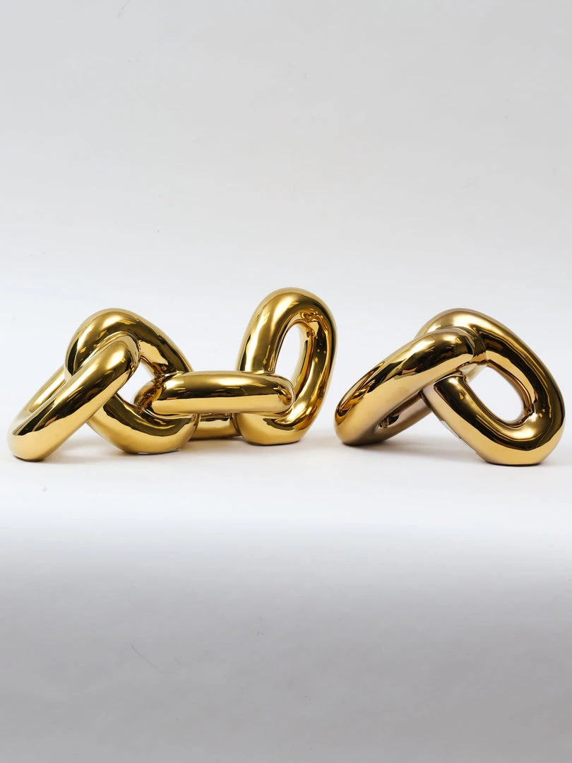Description: This gold chainlinks sculpture will add a touch of luxury to your decor. This sleek and shiny decor is sure to add some glam to your home!