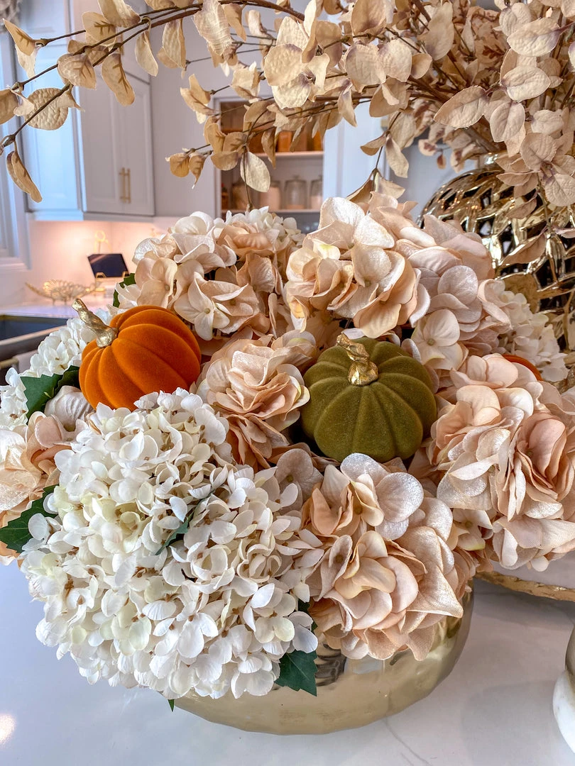Description: This small green velvet pumpkin adds a pop of glamour to your fall decor! We love the gold stem!