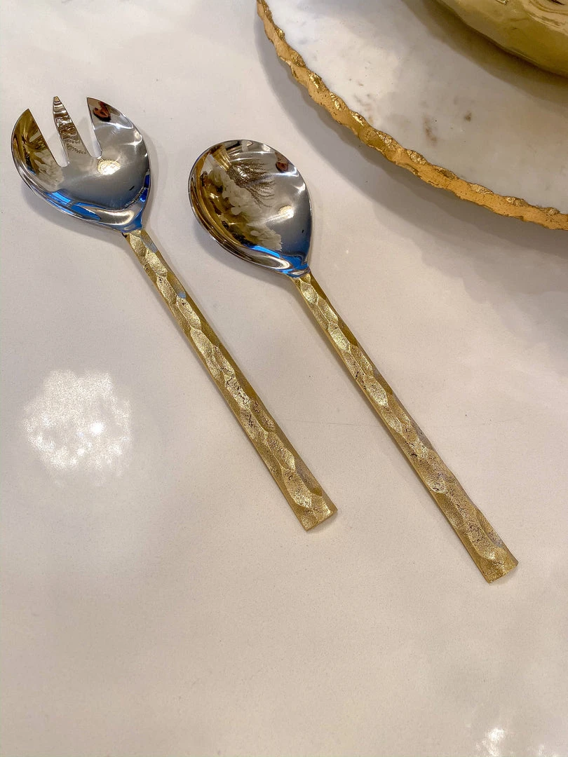 Description: Enjoy serving fine meals with these gorgeous servers! A textured gold handle adds for grip and visual appeal to make these stunning pieces!