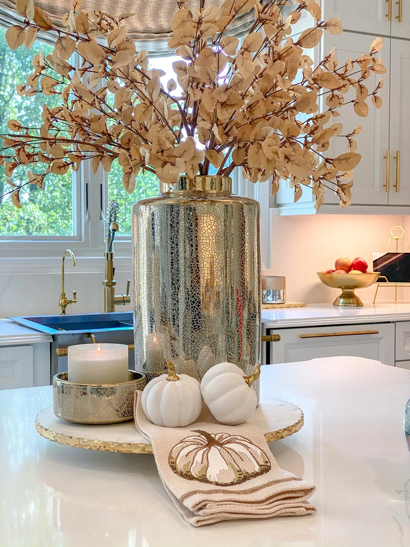 Inspire Me! Home Decor White Ceramic Vase With Stunning Gold Floral Detailed Center