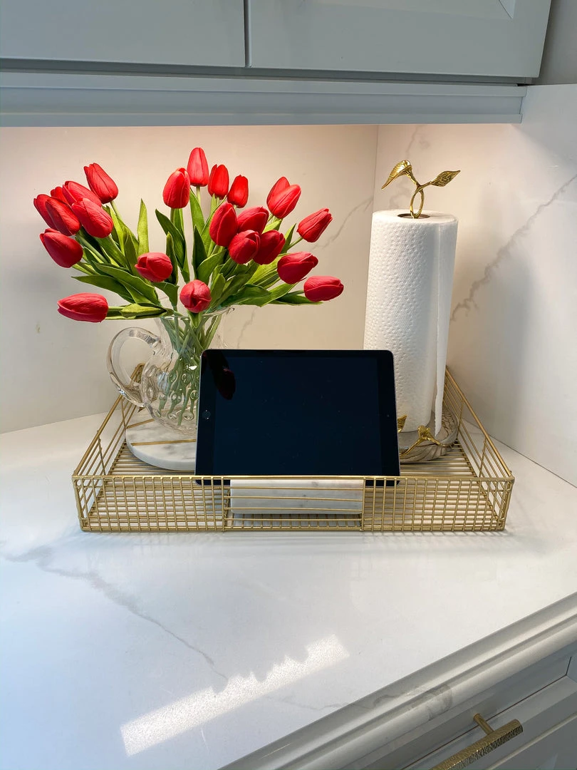 Inspire Me! Home Decor Gold Scalloped Edge Oblong Glass Tray