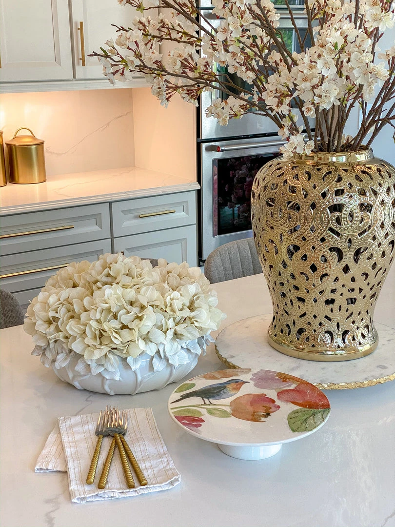Inspire Me! Home Decor White Ginger Jar With Large Gold Flower Detail (3 Sizes)