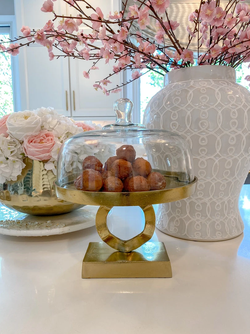 Description: This cake stand is a stunning and unique design! Elevated by an open circle and featuring a slight ribbon texture, this piece is very modern and stylish!