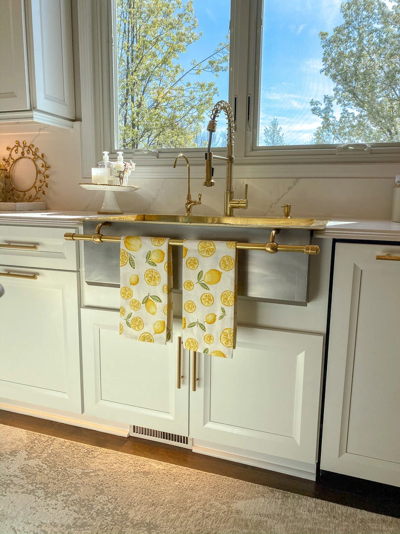 Description: These beautiful painted towels will add a fun touch of spring to your home! Made with a soft cotton and featuring the delicate designs of fresh lemons, these will make a lovely addition to your kitchen display!