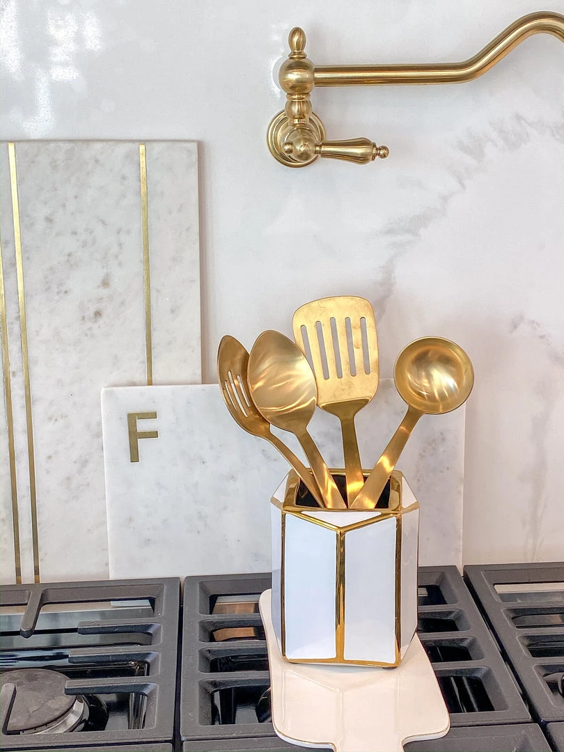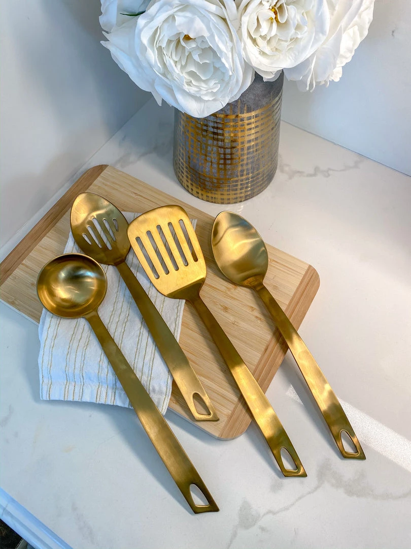 Description: This stunning gold ladle will help you serve up some style! We love the matte gold finish and sleek design.