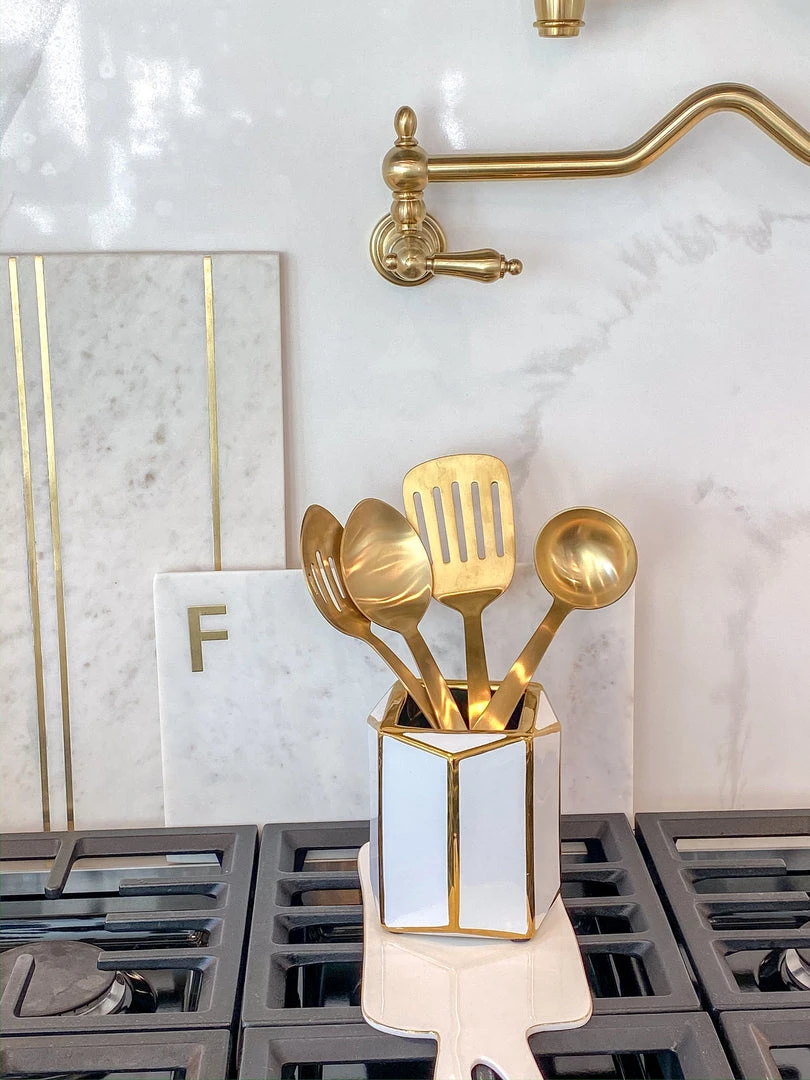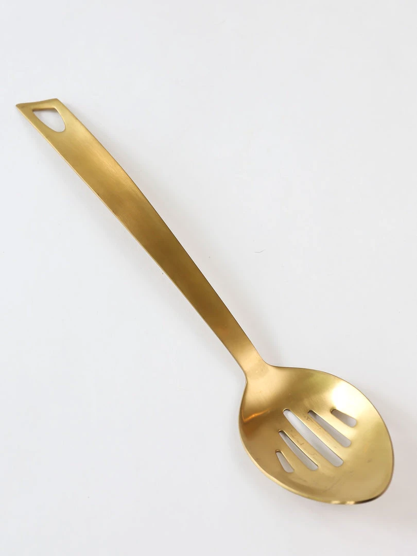 Description: This stunning gold slotted spoon will help you serve up some style! We love the matte gold finish and sleek design.