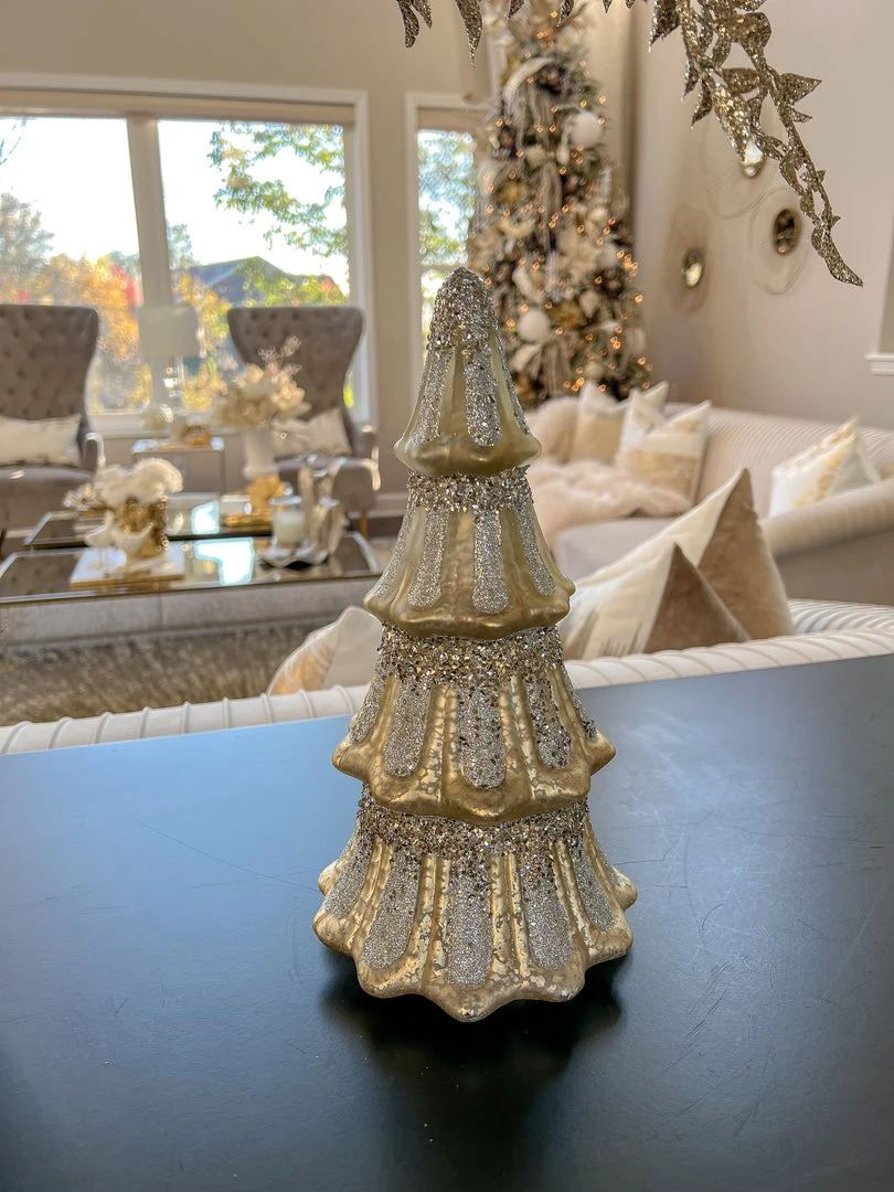 Description: These mercury glass trees with have a beautiful glitter finish and are a beautiful way to decorate for the holiday season.