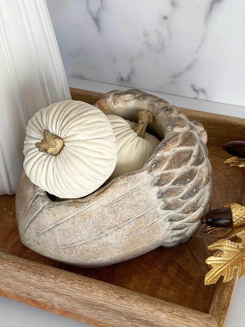 Description: These mini velvet pumpkins are the definition of fall! We love styling them in our bowls or on our trays! The white color styles nicely with any fall color trend.