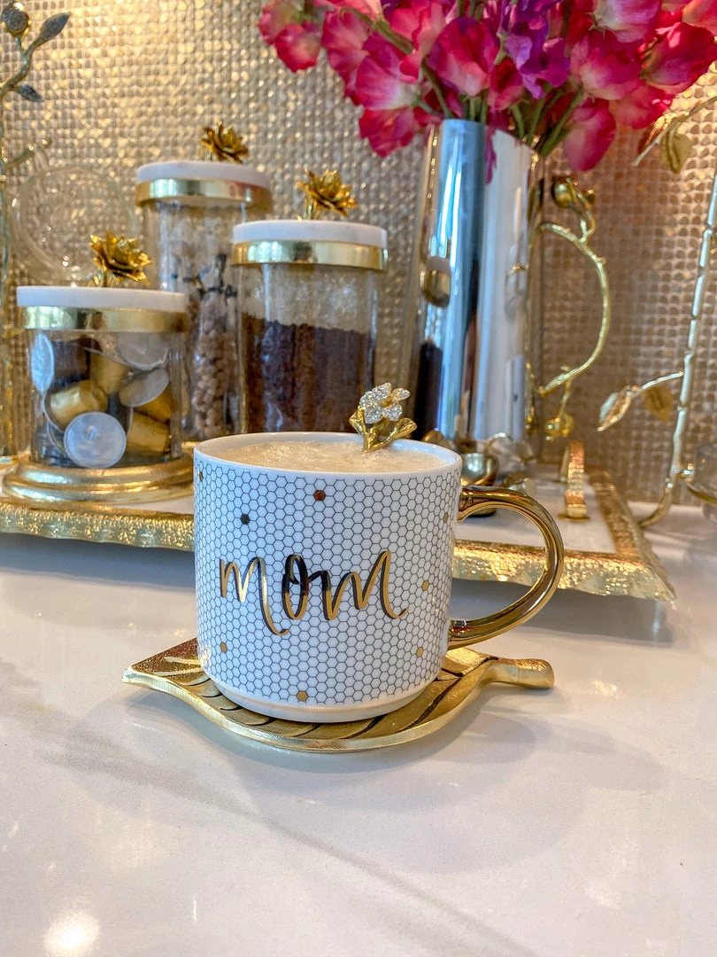 Description: For all the hardworking and glamorous moms out there, we have the perfect mug! This mug features a textile background with gold detaisl and beautiful text!